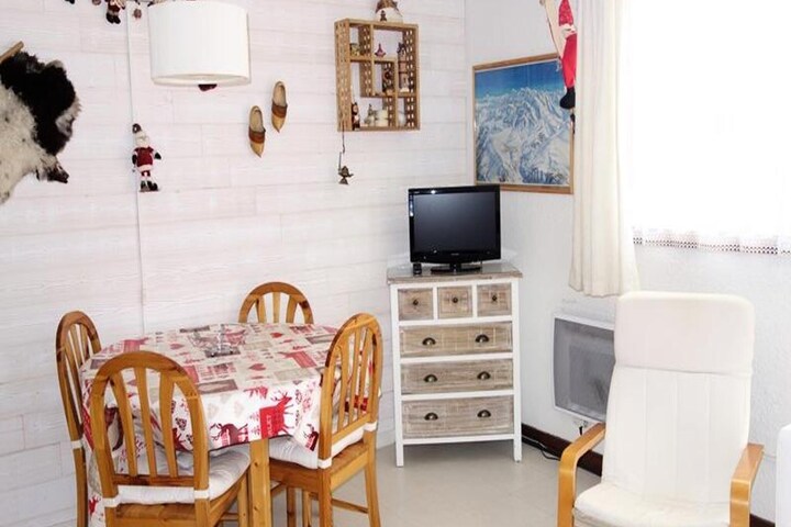 This cozy 30m² studio apartment with a habitable hall comfortably accommodates up to 5 guests. The habitable hall features 2 bunk beds, while the living room offers a 160x190 cm sofa bed and a TV for your entertainment. The property is not pet-friendly, ensuring a peaceful stay. A south-facing terrace provides a sunny outdoor space to relax and enjoy the surroundings, and a ski locker is available for storing your ski gear.