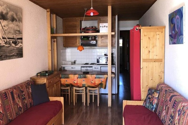 This charming studio apartment with a habitable hall offers a comfortable and functional stay for up to 4 guests. The habitable hall includes a double bed (140), while the living room features a pull-out sofa bed (2x1 person) and a TV for your relaxation. The apartment is not pet-friendly, ensuring a quiet and serene environment. Guests can enjoy the Eastern balcony and ski locker (No. 31) for easy storage of ski equipment.