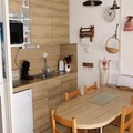This spacious 39m² studio apartment offers a comfortable stay for families or small groups, accommodating up to 6 guests. The habitable hall features two folding bunk beds, ideal for children, as well as two additional bunk beds for extra sleeping space. The living room is furnished with a sofa bed (160x200), perfect for relaxing after a day of adventure. The property is not pet-friendly, ensuring a peaceful environment for all guests.