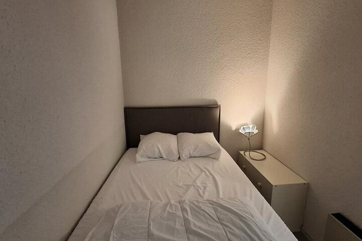 This 28m² apartment offers a comfortable and well-equipped space for guests, featuring a bedroom with a double bed (140 x 190) and a habitable hall with two bunk beds (90 x 190). The living room is furnished with a sofa bed (140 x 190) and a TV, providing a cozy area to unwind after a day of outdoor activities. The property is not pet-friendly, ensuring a quiet and peaceful environment for all guests.