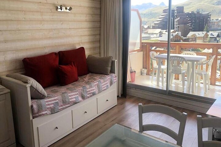 This charming 35 m² apartment is located in a peaceful residence, offering a comfortable space for up to 6 guests. The living room features a pull-out sofa and a TV, perfect for relaxing after a day on the slopes. The bedroom includes a double bed (140 cm), while the mountain corner has two bunk beds, ideal for children. The apartment is not pet-friendly, ensuring a tranquil atmosphere for all guests.