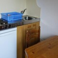 The studio features a simple yet functional kitchen with a microwave oven, 2 electric hotplates, and a refrigerator, providing all the essentials for preparing meals. The bathroom includes a bathtub, along with a separate WC for added convenience. A north-facing balcony offers a beautiful view of the resort, and a ski closet is available for storing your equipment. Bed linen, towels, and end-of-stay cleaning are not included.