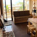 The apartment is equipped with a functional kitchen, featuring 3 electric hotplates, a refrigerator, a dishwasher, and a combined microwave, providing everything you need to prepare meals at your convenience. The bathroom includes a bathtub, and there is a separate toilet for added comfort. Enjoy the south-facing balcony, offering a perfect spot to relax and take in the mountain air, while a ski locker ensures safe storage for your equipment. Heating is available to keep you cozy throughout your stay.