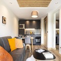 This cozy 2-room cabin can comfortably accommodate up to 4 people, featuring a bedroom with a double bed and a separate cabin with bunk beds. The cabin offers a functional living room and a balcony to enjoy the surrounding views. It is designed to be accessible, with the possibility of opening into the corridor, making it suitable for guests with disabilities. The property is pet-friendly, allowing you to bring your furry companions on your stay.