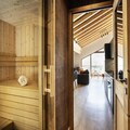 This spacious cabin accommodates up to 10 people, featuring five rooms designed for comfort and convenience. It includes a cozy living room perfect for relaxing, and a private balcony where you can enjoy the fresh air. The cabin offers a variety of sleeping arrangements, with one bedroom featuring a double bed and three others with two single beds each. Additionally, there is a cabin with two bunk beds, making it ideal for larger groups or families. The property has two shower rooms, one bathroom, and two toilets for added comfort. For ultimate relaxation, the cabin also includes a private sauna.