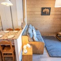 This thoughtfully designed 25m² apartment comfortably accommodates 2 adults and 2 children, making it ideal for couples or small families. The living area features a sofa bed, an open kitchen, and a dining space, creating a warm and inviting atmosphere for shared moments. A separate sleeping area with bunk beds ensures privacy for the little ones, while the balcony provides a serene spot to savor your morning coffee with stunning mountain views. Modern amenities such as bathroom products, linens, and beds made upon arrival add to the convenience, while optional services like Wi-Fi and additional cleaning cater to your needs.