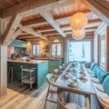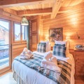Spanning multiple floors, Chalet Loup accommodates up to 14 guests with customizable sleeping arrangements to suit families or groups of friends. The ground floor welcomes you with a private indoor garage for three cars and a luxurious 50m² spa featuring a large jacuzzi and sauna, perfect for unwinding after a day on the slopes. The first floor boasts a ski room with boot dryers, several en-suite twin bedrooms, and a fun-filled games room. On the second floor, a bright and inviting living room with a fireplace and TV opens onto a south-facing balcony, while the open-plan kitchen and dining area provide the perfect space for shared meals. The upper floors feature additional en-suite bedrooms, each with balcony access, ensuring every guest enjoys comfort and privacy.