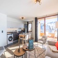 In the charming district of Vieil Alpe, where the spirit of traditional alpine villages thrives, lies the exquisite Fermes de l'Alpe residence. Just 400 meters from the resort center and steps from the slopes, this elegant retreat offers an idyllic setting for your mountain escape. The residence, inspired by the timeless architecture of alpine farms, features five beautifully crafted chalets that blend seamlessly with the breathtaking surroundings of Alpe d’Huez. Here, the crisp mountain air and stunning vistas create a perfect backdrop for unforgettable moments. \n\nThis 66m² apartment is thoughtfully designed to accommodate up to 4 adults and 2 children, making it ideal for families or small groups. The inviting living room with a cozy lounge and dining area opens to a balcony where you can soak in the serene alpine views. The open-plan kitchen is fully equipped for preparing hearty meals after a day on the slopes. The apartment boasts two double bedrooms, one with an en-suite shower room, and a charming cabin area with bunk beds for the little ones. A separate bathroom with a shower and toilet ensures convenience for all guests. \n\nGuests enjoy premium services, including beds made upon arrival, bathroom products, and mid-stay cleanings, ensuring a seamless and relaxing stay. The residence also offers Wi-Fi, indoor parking with a charging point, and ski lockers for added convenience. Pets are welcome, so your furry friends can join in on the adventure. \n\nWith its prime location near the ski lifts and resort center, Fermes de l'Alpe is the perfect base for exploring the world-class slopes of Alpe d’Huez. Whether you’re skiing, snowboarding, or simply savoring the beauty of the French Alps, this residence promises a warm and luxurious haven to return to after a day of alpine adventures.