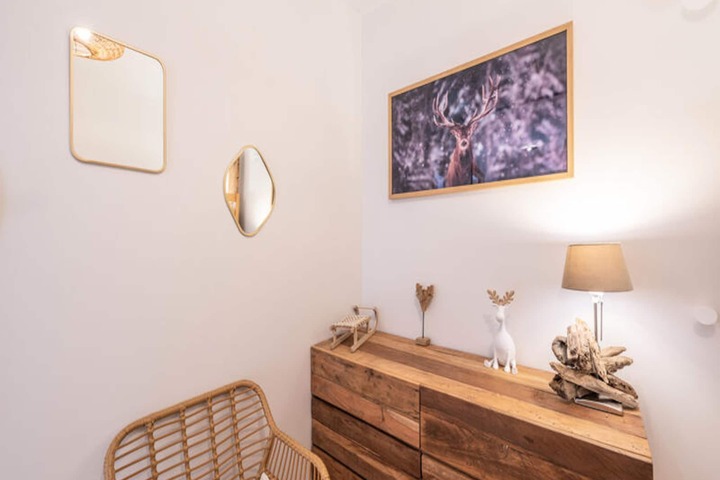 Step inside and discover a warm and inviting space designed for relaxation and togetherness. The apartment comfortably accommodates 4 adults and 2 children, featuring two elegant double bedrooms, a cozy cabin area with bunk beds, and two modern bathrooms for added convenience. The open-plan living area is perfect for unwinding after a day on the slopes, complete with a fully equipped kitchen, a dining space, and a balcony where you can soak in the crisp mountain air and breathtaking views. Thoughtful touches like linens, bathroom products, and beds made upon arrival ensure a seamless and stress-free stay.