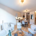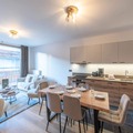Step inside this beautifully designed apartment and discover a harmonious blend of rustic charm and contemporary elegance. The spacious living room invites you to unwind in its cozy lounge area, while the open-plan kitchen and dining space make it easy to share meals and moments together. With two double bedrooms, one featuring an en-suite shower room, a bunk bedroom with its own en-suite, and a separate bathroom with both a bathtub and shower, the layout is thoughtfully designed for comfort and privacy. The balcony offers a serene spot to enjoy your morning coffee while taking in the crisp mountain air and stunning alpine views.