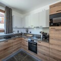 The apartment is thoughtfully designed across two levels. On the ground floor, you’ll find a separate entrance with a ski room equipped with boot dryers, an open-plan kitchen, and a living room that opens onto a sunny balcony. A double en-suite bedroom, a dining area, and a library complete the level, ensuring both functionality and comfort. Upstairs, two double bedrooms, a charming children’s room with twin beds and a desk, and a separate shower room with a toilet provide ample space for relaxation and privacy. With amenities like Wi-Fi, firewood for cozy evenings, and a double garage, every detail has been curated for your convenience.