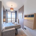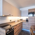 Spanning an impressive 118m², this beautifully designed apartment comfortably accommodates up to 8 adults and 2 children. The inviting living room, complete with a cozy lounge area, video projector, and double sofa, is perfect for relaxing evenings. The open-plan kitchen, fully equipped for all your culinary needs, flows seamlessly into the dining area, which seats eight. Step out onto the southwest-facing terrace to soak in the crisp mountain air and stunning views. The apartment features four well-appointed bedrooms, including two en suite double rooms and a family room with a double bed and two single Murphy beds. Additional amenities include a separate bathroom with both a bathtub and shower, two separate toilets, and a laundry room with a washing machine, dryer, and iron.