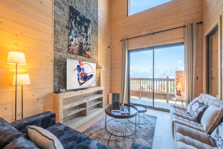 In the serene Bergers district of Alpe d'Huez, this luxurious apartment in the new Chalets du Golf residence invites you to experience the perfect blend of alpine charm and modern sophistication. With its breathtaking mountain views and prime location just 150 meters from the nearest ski lift, this property offers unparalleled ski-in/ski-out convenience, making it an ideal retreat for winter sports enthusiasts and nature lovers alike. Imagine starting your day with the crisp mountain air and ending it with the glow of the setting sun over the peaks, all from the comfort of your private 20m² terrace. \n\nThe apartment spans two floors, thoughtfully designed to accommodate up to eight guests in absolute comfort. The ground floor features a bright and inviting living area, an open-plan fully equipped kitchen, and a double en-suite bedroom. Upstairs, you’ll find three additional double bedrooms, including another en-suite, and a private bathroom. Every detail has been carefully curated to ensure a seamless stay, from the elegant decor to the high-end amenities. \n\nGuests will appreciate the included services such as linens, beds made upon arrival, bathroom essentials, and end-of-stay cleaning. The property also offers both indoor and outdoor parking spaces for added convenience. Beyond the residence, the vibrant Alpe d'Huez offers a wealth of activities year-round, from world-class skiing and snowboarding in winter to hiking and cycling trails in summer. With its prime location and luxurious touches, this apartment is the perfect base for creating unforgettable alpine memories.