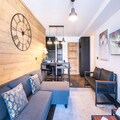 In the heart of the charming Vieil Alpe district of Alpe d'Huez, this exquisite apartment in the Quartz residence offers an unparalleled alpine retreat. With its prime location, you’ll enjoy ski-in/ski-out access and be just steps away from the ski lifts, ensuring seamless days on the slopes. The south-facing terrace invites you to bask in the sun while taking in breathtaking mountain views, creating the perfect setting for relaxation after a day of adventure. The warm wooden decor and bright interiors exude a cozy mountain ambiance, making it a haven for winter sports enthusiasts and nature lovers alike. \n\nThe 45m² apartment is thoughtfully designed to accommodate up to four guests. The open-plan kitchen flows into a welcoming living and dining area, ideal for shared meals and cozy evenings. The double bedroom and a second bedroom with a bunk bed provide comfortable sleeping arrangements for families or small groups. A modern bathroom with a bathtub and toilet ensures convenience, while the spacious 38m² terrace offers a private outdoor escape to soak in the alpine atmosphere. \n\nThe residence boasts excellent amenities, including a ski locker with a boot dryer, bicycle storage, and complimentary Wi-Fi. Guests are greeted with thoughtful touches such as made-up beds, premium linens, and bathroom products, ensuring a seamless and luxurious stay. The end-of-stay cleaning service allows you to focus solely on enjoying your holiday. \n\nLocated in the vibrant Vieil Alpe district, you’ll find a wealth of nearby attractions, from the ESF ski school and cable cars to a sports center with a swimming pool, gym, and cinema. The area’s shops and restaurants offer everything from local delicacies to lively après-ski experiences. Whether you’re here for thrilling descents or tranquil mountain moments, this apartment is your gateway to an unforgettable alpine escape.