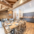 Spanning 105 m², this elegant apartment comfortably accommodates up to eight guests. The thoughtfully designed layout includes a cozy living room with a lounge, an open kitchen, and a dining area that opens onto an east-facing terrace, perfect for soaking in the morning sun. With two double bedrooms, an additional double bedroom with an en-suite shower room, and a sleeping alcove with bunk beds, the space is ideal for families or groups of friends. Modern conveniences such as Wi-Fi, a ski locker, and indoor parking ensure a seamless stay, while the included services like beds made upon arrival, bathroom products, and end-of-stay cleaning add an extra touch of ease and luxury.