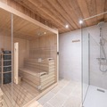 Designed with elegance and comfort in mind, the chalet features five en-suite bedrooms accommodating up to eight adults and four children. The master bedroom, with its king-size bed and private south-facing balcony, offers a serene sanctuary, while the children’s room with bunk beds creates a playful haven. The living area is a masterpiece of modern alpine design, with a cozy fireplace, open-plan kitchen, and a spacious dining area that opens onto a sunlit terrace. Relax in the outdoor jacuzzi as you soak in the panoramic views, or unwind in the wellness area complete with a sauna and shower. For entertainment, the home theater room with an Xbox and Apple TV ensures fun for all ages.