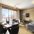 Imagine waking up to the soft glow of the morning sun streaming through your windows, stepping onto your private south-facing terrace, and taking in panoramic views of the pristine slopes. This spacious and bright apartment is a true alpine retreat, offering a perfect blend of modern comfort and mountain charm. Located in a residence with ski-in/ski-out access, it’s an ideal haven for winter sports enthusiasts and nature lovers alike. \n\nInside, the apartment boasts a large, luminous living and dining area, perfect for gathering with family or friends after a day on the slopes. The fully equipped kitchen, complete with an oven, induction hob, microwave, and dishwasher, makes preparing meals a breeze. With three cozy bedrooms, including two with luxurious double beds and one with twin beds, as well as a sleeping alcove with bunk beds, the apartment comfortably accommodates up to eight guests. Three bathrooms, a washer-dryer, and a separate toilet ensure convenience for all. \n\nThe residence itself is a haven of relaxation, featuring a swimming pool, gym, sauna, steam room, and sensory showers. After an active day, unwind in these luxurious amenities or simply enjoy the tranquility of your terrace. Two private garages add to the convenience, making your stay seamless and stress-free. \n\nSet in the heart of the French Alps, this apartment offers not only direct access to world-class skiing but also proximity to charming alpine villages, scenic trails, and vibrant après-ski spots. Whether you’re here to carve through fresh powder, hike amidst stunning landscapes, or simply relax in serene surroundings, this property promises an unforgettable escape. Let the magic of the mountains captivate you and create cherished memories year-round.