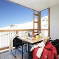 The apartment itself is a haven of modern design and thoughtful touches. The living/dining room, complete with a smart TV and sound bar, opens onto a cozy 10m² northwest-facing terrace equipped with garden furniture and electric heating—perfect for enjoying a glass of wine as the sun sets over the mountains. The kitchen is a chef’s dream, featuring a combination microwave oven, washer-dryer, dishwasher, refrigerator, induction hob, wine cellar, kettle, and coffee machine. The bedroom boasts a plush 180cm double bed and a smart TV, while a sleeping alcove with bunk beds provides a cozy space for children or additional guests. A sleek shower room and separate toilet complete the layout, ensuring convenience for all. Additional perks include a private garage and a ski locker with a boot dryer, making your stay as seamless as possible.