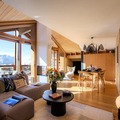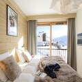 High above the alpine slopes, this stunning top-floor apartment offers a perfect blend of modern luxury and mountain charm. With its exposed wooden beams and spacious, light-filled interiors, this retreat invites you to relax and unwind after a day of adventure in the French Alps. The large southwest-facing balcony provides breathtaking views of the slopes, making it an ideal spot to enjoy a morning coffee or an evening glass of wine while soaking in the serene mountain atmosphere. \n\nInside, the apartment boasts a thoughtfully designed layout featuring a bright living and dining area, a fully equipped separate kitchen, and three cozy bedrooms. Two bedrooms are furnished with comfortable double beds, while the third offers two single beds. A sleeping alcove with bunk beds is perfect for children or additional guests. Modern amenities include smart TVs in every bedroom, a washing machine and dryer, and an elegant ethanol fireplace that adds a warm and inviting touch. The apartment also features a bathroom, a shower room, and a separate toilet for added convenience. \n\nThe residence itself is a haven of relaxation and activity. With ski-in/ski-out access, you can step directly onto the slopes, while the on-site amenities include a swimming pool, gym, sauna, steam room, and sensory showers. Two garages equipped with electrical outlets ensure easy parking and charging for electric vehicles. \n\nLocated in the heart of the French Alps, this property is surrounded by pristine natural beauty and offers easy access to nearby ski lifts, hiking trails, and charming alpine villages. Whether you’re here for winter sports or summer adventures, this apartment promises an unforgettable stay with all the comforts of home and the luxury of a high-end mountain retreat.