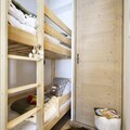 High above the snowy peaks of the French Alps, this elegant apartment offers a luxurious retreat with breathtaking views of the resort and its pristine ski slopes. Imagine waking up to the golden sunlight streaming through the windows, stepping onto your private terrace, and breathing in the crisp mountain air as you plan your day of alpine adventure. Whether you're here for the winter wonderland or the vibrant summer landscapes, this residence provides the perfect balance of comfort and style. \n\nInside, the apartment is thoughtfully designed with modern amenities and cozy touches. The spacious living and dining area, complete with a TV, opens onto a 15m² terrace equipped for relaxation. The fully equipped kitchen features high-end appliances, including an induction hob, oven, microwave, dishwasher, washer-dryer, and a Nespresso coffee machine, ensuring you have everything you need for a comfortable stay. Two inviting bedrooms with 160cm double beds and TVs, a sleeping alcove with bunk beds, a sleek bathroom, and a separate toilet complete the layout, offering ample space for families or groups. \n\nLocated in a new luxury residence, guests enjoy ski-in/ski-out access, a secure garage, and a ski locker with a heated boot dryer for ultimate convenience. The residence also boasts exceptional amenities, including a swimming pool, gym, sauna, steam room, and sensory showers, making it a haven for relaxation after a day on the slopes. \n\nWith bed linens, towels, welcome products, and end-of-stay cleaning included, this property ensures a seamless and indulgent holiday experience. Whether you're here to carve through the snow or explore the stunning trails of the Tarentaise Valley, this apartment promises unforgettable memories in the heart of the Alps.