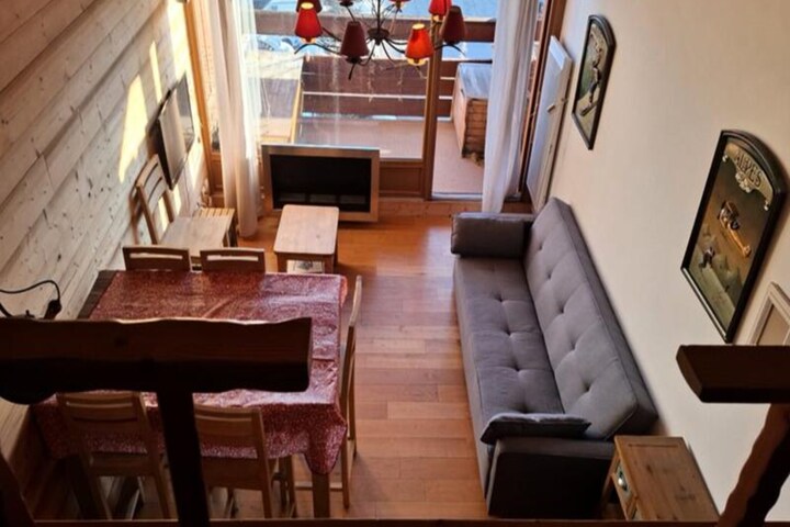 High in the heart of the French Alps, this charming 30m² duplex apartment in the Le KAREN residence offers an inviting retreat for those seeking the perfect alpine escape. With its south-facing balcony, you can bask in the sunlight while gazing at the breathtaking mountain scenery, creating a serene backdrop for your holiday. The location is a dream for ski enthusiasts, with the ski lifts just steps away, ensuring seamless access to the slopes and the exhilarating Paradiski domain. Whether you're visiting in winter or summer, this cozy haven is designed for comfort and convenience.