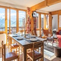 Designed to comfortably accommodate 4 adults and 2 children, the apartment features a cozy living room with a dining area and an open-plan kitchen, perfect for sharing meals and creating lasting memories. Two double bedrooms provide restful retreats, while a separate sleeping area with bunk beds is perfect for younger guests. The apartment boasts two bathrooms—one with a bathtub and the other with a shower—along with a separate toilet for added convenience. East-facing balconies invite you to start your mornings with breathtaking sunrises over the peaks, accompanied by the crisp alpine air.