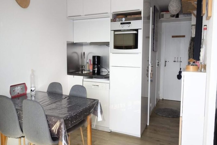 High above the charming village of Alpe d’Huez, this cozy apartment in the Les Balcons d’Huez residence offers a tranquil retreat just steps from the action. With the ALP EXPRESS cable car only 50 meters away and free shuttles at your doorstep, you’ll have seamless access to the renowned slopes and vibrant village life. From your south-facing balcony, soak in the crisp mountain air and enjoy stunning views of the surrounding peaks, making every moment feel like a postcard come to life. \n\nThis thoughtfully designed 23m² apartment is perfect for couples or small families seeking comfort and convenience. The mountain corner features two snug bunk beds, while the living room boasts a comfortable sofa bed, ideal for unwinding after a day on the slopes. A well-equipped kitchen with an induction hob, combination microwave oven, refrigerator, and dishwasher ensures you’ll have everything you need to prepare hearty meals. The bathroom includes a relaxing bathtub, and the separate toilet adds extra practicality. Additional amenities such as a ski locker and a private garage make your stay even more hassle-free. \n\nBeyond the residence, Alpe d’Huez offers a wealth of activities year-round. In winter, explore the legendary ski runs of the Grandes Rousses massif, while summer invites you to hike, bike, or simply revel in the breathtaking alpine scenery. The nearby village brims with restaurants, shops, and après-ski options, ensuring there’s something for everyone. Whether you’re here for adventure or relaxation, this apartment is your gateway to unforgettable mountain memories.