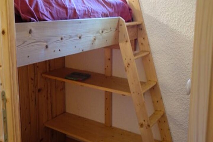 Inside, the apartment comfortably accommodates up to six guests. The bedroom features two bunk beds that can be joined, while a mountain corner mezzanine bed and a sofa bed in the living room offer additional sleeping options. The living area is equipped with a TV, DVD player, and radio, creating a cozy space to unwind after a day of activities. The kitchen is fully equipped with an oven, ceramic hob, dishwasher, and refrigerator, ensuring you have everything you need to prepare delicious meals. A modern bathroom with a shower and a separate WC add to the comfort and practicality of the space.