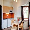 The apartment features an open kitchen with a stovetop, oven, and fridge, along with a comfortable living area and dining space. Wi-Fi is available for an additional cost, and daily cleaning or towel services can be requested at reception. Ideally located near ski slopes and village amenities, this apartment offers a relaxing stay in La Tania.