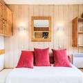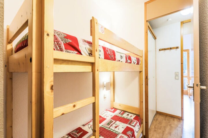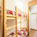 This ski-in/ski-out apartment, located within a residence comprising two interconnected chalets, comfortably accommodates up to six guests. It features one bedroom with two single beds, a cabin area with two single bunk beds, and a sofa bed in the living room. Pets are allowed for an additional fee, but it's essential to confirm with the reception as restrictions may apply depending on the specific accommodation.