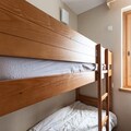 Composition of the living room: 2 convertible sofa beds (sleeps 4). 1 cabin area (with door): 2 single bunk beds.