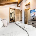 In the prestigious heart of Courchevel 1850, where alpine elegance meets world-class skiing, this exquisite apartment offers a perfect retreat for discerning travelers. Imagine waking up to the crisp mountain air, stepping out onto your private balcony, and gazing at the pristine slopes just steps away. The Arbê building’s prime location provides direct ski-in/ski-out access, ensuring effortless adventures on the snow, while the vibrant resort center is right at your fingertips, offering a blend of luxury boutiques, fine dining, and lively après-ski activities. \n\nSpanning 120 square meters, the Horlana apartment seamlessly combines traditional Savoyard charm with modern sophistication. Designed to accommodate up to six adults, its thoughtful layout ensures both comfort and privacy. On the first level, you’ll find a cozy living room and a fully equipped kitchen and dining area, perfect for sharing meals after a day on the slopes. The master bedroom boasts a king-sized bed, en suite bathroom with shower and bathtub, and balcony access, providing a serene space to unwind. The upper level features two double bedrooms, each with en suite facilities and balconies, offering breathtaking views of the surrounding peaks. \n\nGuests are welcomed with premium services, including freshly made beds, luxurious linens, and mid-stay cleaning, ensuring a hassle-free and indulgent experience. Courchevel 1850’s central location means everything you need is within reach, from ski schools and equipment rentals to gourmet restaurants and exclusive shops. \n\nWhether you’re here to carve through the legendary slopes or simply soak in the alpine ambiance, this apartment is the ultimate gateway to an unforgettable mountain escape. Let the charm of Courchevel and the comfort of Horlana create memories that will last a lifetime.
