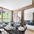 The Phoenix 801 apartment spans an impressive 96m², blending contemporary design with cozy alpine touches. Accommodating up to six adults and two children, the layout is thoughtfully designed for comfort and privacy. The open-plan living and dining area, complete with a fully equipped kitchen, is perfect for gathering after a day of adventure. Three elegant double bedrooms, two with en-suite facilities, ensure restful nights, while the alcove with bunk beds delights younger guests. A south/east-facing balcony stretches the length of the apartment, offering breathtaking views of the surrounding peaks.