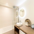 Spanning 53 m², the Le Lac 37 apartment is thoughtfully designed to accommodate up to 2 adults and 3 children, making it ideal for families or couples seeking a cozy yet stylish escape. The living room, with its warm ambiance and dining area, is perfect for unwinding after a day of adventure. The fully equipped open-plan kitchen allows you to prepare delicious meals, while the double bedroom with an en-suite shower and the triple bedroom ensure restful nights for all. A separate bathroom and WC add to the convenience, and amenities like Wi-Fi, a ski locker, and a Tassimo coffee machine enhance your stay.