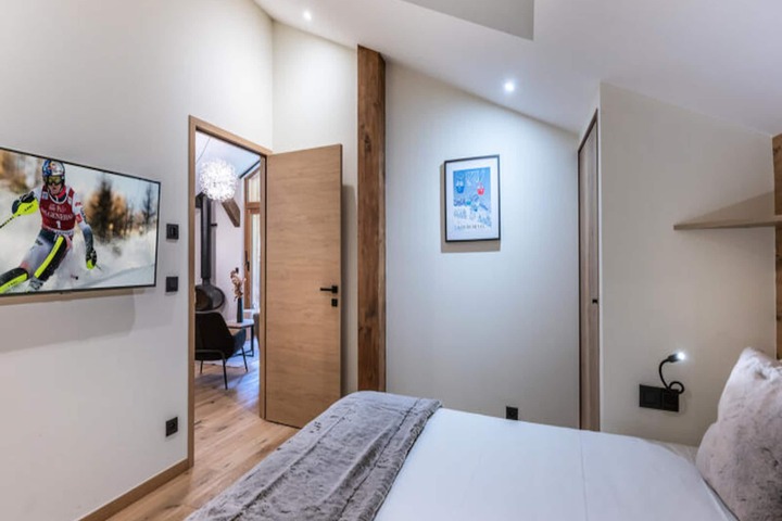 High above the picturesque slopes of Courchevel Moriond, this elegant apartment in the Domaine de l'Ariondaz offers a luxurious alpine retreat for families and friends. Located on the top floor of the Résidence Fritillaire, it combines modern comfort with breathtaking views and convenient access to the ski slopes, just 340 meters away. Whether you're here to carve through pristine snow or bask in the mountain sun, this property promises an unforgettable stay in the heart of the French Alps. \n\nThe apartment spans approximately 80 square meters and is thoughtfully designed to accommodate up to four adults and three children. It features two spacious double bedrooms, one with an en-suite shower and heated towel rail, and a cozy cabin bedroom with bunk beds. The living area is a welcoming space with a wood-burning fireplace, a south-facing balcony, and a stylish dining area. The open-plan kitchen is fully equipped with modern appliances, including a dishwasher, induction hob, microwave, and oven, ensuring you have everything you need to prepare hearty meals after a day on the slopes. Additional amenities include a washer-dryer, ski locker, and private covered parking spaces with boot racks and an electric car charging point. \n\nBeyond the apartment, Courchevel Moriond offers a vibrant atmosphere with shops, restaurants, and après-ski activities all within walking distance. The ski-in/ski-out access makes it effortless to explore the renowned Three Valleys ski area, while the surrounding trails and panoramic views provide endless opportunities for adventure and relaxation. \n\nWith its exceptional location, luxurious amenities, and warm alpine charm, this apartment is the perfect base for creating cherished memories in the French Alps.