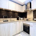 Inside the apartment, you’ll find a spacious kitchen, fully equipped to prepare your favorite meals. The open-plan design leads into a warm dining area, perfect for enjoying meals with your loved ones. The large living room offers a comfortable space to unwind, while the private balcony provides stunning mountain views. Guests also have access to the fitness room and spa, enhancing their stay.