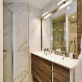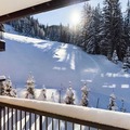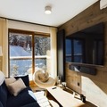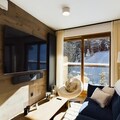 Inside, the apartment offers a large living room of 32 m², featuring a comfortable seating area with an ethanol fireplace. The spacious dining area is perfect for family meals, while the modern kitchen comes fully equipped for all your culinary needs. Additional amenities include bed and bathroom linen, as well as daily cleaning services, ensuring a hassle-free stay in the heart of Courchevel Moriond.