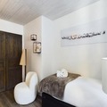 This charming 5-person apartment is located on the 4th floor of a small residence, offering a warm, family-friendly atmosphere. The apartment features a master bedroom with an en-suite bathroom and a second bedroom with two beds and a separate bathroom. The children's sleeping area includes a single bed and boudoir, as well as a separable double bed. The property is pet-free, ensuring a relaxing stay for all guests. A large balcony with stunning mountain views completes the space.