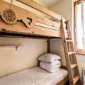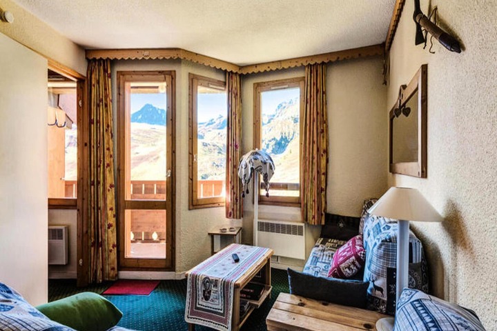This cozy 35m² apartment, ideal for families or friends, is located on the 5th floor of a quiet residence in Belle Plagne. The apartment features a living room with a sofa bed for two, a separate cabin area with bunk beds, and a bedroom with a double bed. The apartment is not pet-friendly and offers direct access to the slopes, making it a perfect choice for ski enthusiasts. Guests can enjoy a balcony with stunning mountain views, facing southwest.