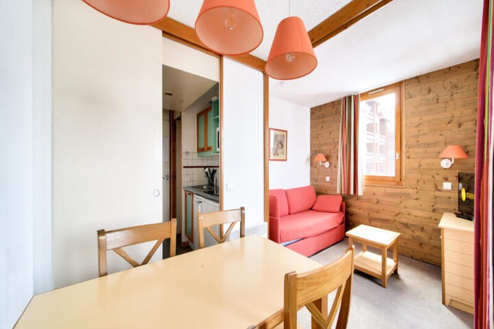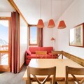 At the foot of the slopes, the apartment provides direct ski-in/ski-out access, ideal for winter sports lovers. The village center, just a short walk away, features shops, cafes, and markets. Guests can enjoy local Savoyard cuisine at nearby restaurants, including the K2, which is conveniently located close by. This location is perfect for outdoor activities and relaxation.