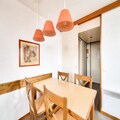 The apartment comes with a semi-open kitchen, perfect for simple meals. It features a dining table for five and a comfortable living area. The bathroom is in good condition, and the space is bright and inviting. Additional services such as bed linens, towels, and cleaning are available for an extra charge, making for a convenient and flexible stay.