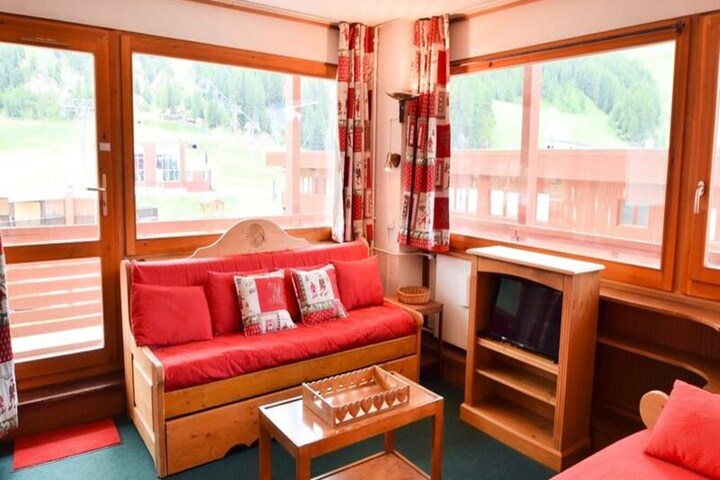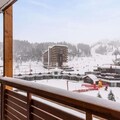 High above the bustling heart of La Plagne Centre, this bright and inviting apartment offers a front-row seat to the slopes and a panoramic view of the snowy alpine landscape. Imagine waking up to the sun illuminating the peaks, stepping onto your spacious south-facing balcony, and planning your day of adventure in the Paradiski domain. With direct access to the resort’s shopping mall and ski lifts, this property is a haven for those seeking convenience and comfort in the French Alps. \n\nInside, the apartment is thoughtfully designed to accommodate up to six guests. The divisible living room creates flexible spaces for dining and relaxation, while the cozy bedroom features bunk beds perfect for families or groups of friends. The kitchen is equipped with modern amenities, including a combination oven, dishwasher, and electric hobs, making it easy to prepare hearty meals after a day on the slopes. The bathroom with a bathtub and separate toilet ensures practicality, while the large corner balcony invites you to soak in the alpine atmosphere from both the living room and bedroom. \n\nThe residence, La Meije, is ideally situated at the foot of the slopes, offering ski-in/ski-out access and proximity to all the essentials. Whether you need ski passes, equipment rentals, or a quick bite at the shopping mall, everything is just steps away. In summer, the area transforms into a paradise for hikers and mountain bikers, with trails winding through breathtaking scenery. \n\nPerfect for both winter sports enthusiasts and summer adventurers, this apartment combines the charm of alpine living with the convenience of a central location. Create unforgettable memories in La Plagne Centre, where the mountains are your playground and relaxation is always within reach.