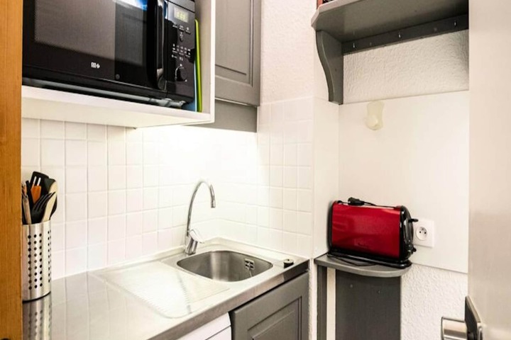 High above the serene slopes of Plagne Villages, this charming studio apartment offers a cozy retreat for ski enthusiasts and mountain lovers alike. With its south-facing balcony overlooking pristine pistes, you’ll wake up to breathtaking views and the promise of adventure just steps away. The residence’s quiet atmosphere and direct access to the slopes make it an ideal base for exploring the world-renowned Paradiski domain, whether you’re carving through fresh powder or enjoying sunny alpine trails. \n\nCompact yet thoughtfully designed, this divisible studio comfortably accommodates up to five guests. The living area features a rapido double sofa bed and a dining space, while the sliding partition reveals a separate sleeping area with bunk beds and a single bed. A well-equipped kitchen includes electric hobs, a refrigerator, microwave, and dishwasher, ensuring all the essentials for preparing hearty meals after a day on the slopes. Modern conveniences like WiFi and a ski locker on the ground floor add to the ease of your stay. \n\nLocated just 700 meters from local shops, accessible via a free shuttle bus, the residence offers both tranquility and convenience. Plagne Villages is seamlessly connected to Plagne Centre by a free gondola, making it easy to explore the wider area. In winter, enjoy unparalleled skiing, while summer transforms the region into a haven for hiking, biking, and breathtaking nature excursions. \n\nWhether you’re seeking thrilling descents or peaceful alpine vistas, this studio invites you to experience the magic of the French Alps in comfort and style.