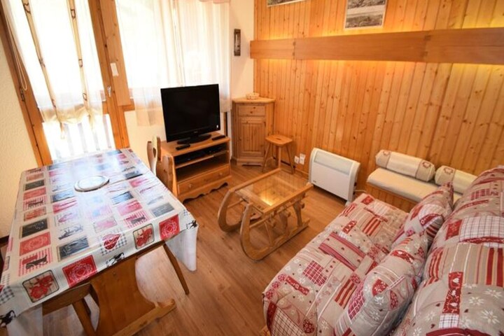 Inside, the 26m² apartment is thoughtfully designed for comfort and functionality. The open-plan kitchen, equipped with modern amenities such as ceramic hobs, a dishwasher, and a combination oven, makes meal preparation a breeze. The living room features a double sofa bed and a TV with TNT and DVD, creating a cozy space to relax. The separate bedroom offers two trundle beds, ideal for families or small groups. The bathroom includes a bathtub, and there is a separate toilet for added privacy. Practical touches like a ski locker and free outdoor parking enhance your stay, while the non-smoking and pet-free policy ensures a clean and allergy-friendly environment.