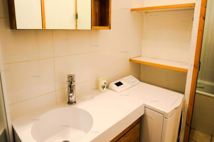 Amidst the serene charm of Plagne Villages, this delightful apartment offers a cozy retreat for up to five guests. Surrounded by the tranquil beauty of a lush forest and located just 50 meters from local shops, this property combines convenience with the allure of nature. Whether you're seeking a peaceful escape or an action-packed adventure, this is the perfect base for your alpine getaway. \n\nThe apartment spans 28m² and features a clever layout with a divisible living area, allowing for flexible sleeping arrangements. It includes a comfortable double sofa bed in the living room, a single bed, and a trundle bed in the divided space. The separate kitchen is fully equipped with modern amenities such as ceramic hobs, a refrigerator, oven, microwave, dishwasher, and a Tassimo coffee maker, making it easy to prepare delicious meals. The bathroom includes a bathtub and a washing machine, while the separate WC adds extra convenience. Two south/west-facing balconies provide stunning views of the surrounding forest, perfect for unwinding after a day on the slopes. \n\nSituated at the foot of the ski slopes, the residence offers unparalleled access to winter sports. A ski locker is available for your equipment, and the free cable bus connects you effortlessly to the nearby Plagne Centre. In summer, the area transforms into a haven for hikers and nature enthusiasts, with trails weaving through the picturesque alpine landscape. \n\nWhether you're here to carve through fresh powder or explore the tranquil beauty of the mountains, this apartment in Les Soldanelles Residence promises a memorable stay in the heart of the French Alps.