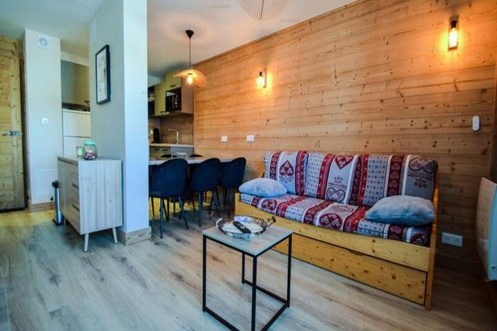 High above the Tarentaise Valley, this beautifully renovated apartment in the LES HAMEAUX II residence offers a serene alpine retreat in the heart of Plagne Villages. With its modern design and thoughtful amenities, it provides the perfect balance of comfort and convenience for your mountain getaway. Imagine waking up to panoramic views of the valley and resort from your private north/east-facing balconies, where the crisp mountain air sets the tone for a day of adventure or relaxation.