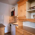 Inside, this 50m² apartment is thoughtfully designed to accommodate up to eight guests, making it perfect for families or groups of friends. The cozy living room features a trundle bed and a single bed, while the two bedrooms offer a variety of sleeping arrangements, including a double bed, bunk beds, and a pull-out bed. The kitchenette is fully equipped with modern appliances, including an induction hob, oven, microwave, dishwasher, and refrigerator, ensuring you have everything you need to prepare hearty meals after a day of alpine adventures. With a bathroom, an additional shower room with a toilet, and a ski locker for added convenience, this apartment is as practical as it is inviting.