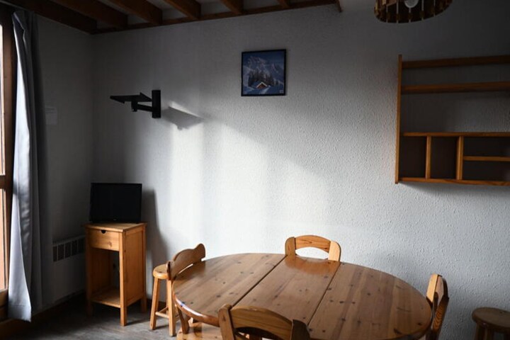 High above the charming Vallandry village, this cozy apartment offers a serene escape with breathtaking views of the valley and surrounding residences. Perfectly situated for both winter and summer adventures, it’s just a short five-minute stroll to the ski school, lifts, and local shops, ensuring convenience without compromising tranquility. Whether you’re here to carve the slopes or explore alpine trails, this residence is your gateway to unforgettable moments in the heart of the French Alps. \n\nStep inside this spacious 52m² ground-floor apartment, thoughtfully designed to accommodate up to seven guests. The southwest-facing balcony invites you to soak in the sunshine while admiring the picturesque landscape. The living area features a comfortable double sofa bed, while upstairs you’ll find a cozy bedroom with a double bed and a sleeping alcove equipped with bunk beds and a single bed—ideal for families or groups of friends. Two bathrooms, each with a bathtub, and two separate toilets ensure ample space and privacy for all. The recently updated flooring adds a fresh touch to the warm, inviting interiors. \n\nThe kitchenette is fully equipped with an electric stovetop, mini oven, dishwasher, and refrigerator, making it easy to prepare meals after a day of adventure. Additional amenities include a television and a ski locker, ensuring a hassle-free stay. Please note that pets are not allowed, and bed linen is included for most stays. \n\nWith its prime location near “La Bergerie de Raphaël” restaurant and daycare facilities, this apartment combines comfort, convenience, and charm. Whether you’re seeking thrilling ski runs, scenic hikes, or peaceful moments on the balcony, this Vallandry retreat promises a memorable alpine getaway.