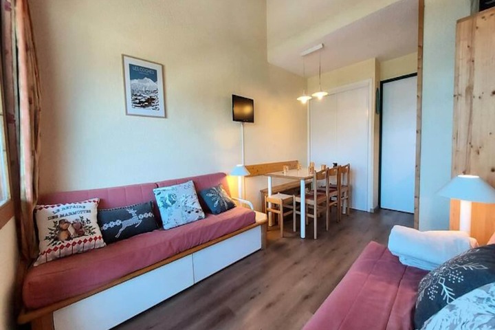 High above the picturesque Tarentaise Valley, this charming apartment offers a cozy alpine retreat with breathtaking views of Mont Blanc. Situated on the 4th floor of the Le 4ème Dé residence, this 35 m² space is perfect for families or small groups seeking a tranquil yet convenient base for their mountain adventures. Whether you're here to carve through the snow in winter or explore lush trails in summer, this property provides the perfect setting for unforgettable moments in the French Alps.