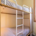 Inside, the 35m² apartment is thoughtfully designed to accommodate up to six guests. The fully equipped kitchenette, complete with a ceramic hob, dishwasher, microwave, coffee maker, and kettle, makes meal preparation a breeze. The cozy bedroom features a double bed, while a separate sleeping alcove with bunk beds and a double sofa bed in the living room provide flexible sleeping arrangements. A bathroom with a bathtub and a separate toilet add to the convenience, and a flat-screen TV ensures entertainment after a day of exploring.